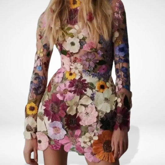 Blomsterbroderet mini festkjole til kvinder – Augusta