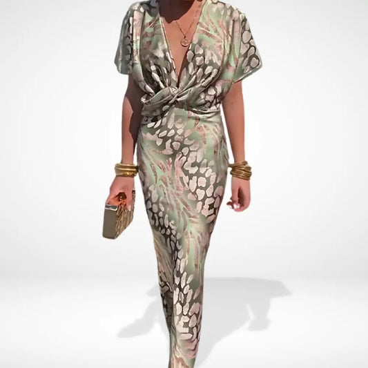 Maxikjole med draperet front og glansfuldt mønster til kvinder – Noemi