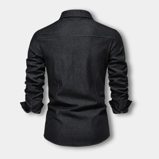 Langærmet bluse med brystlommer og denimlook til mænd – Newton