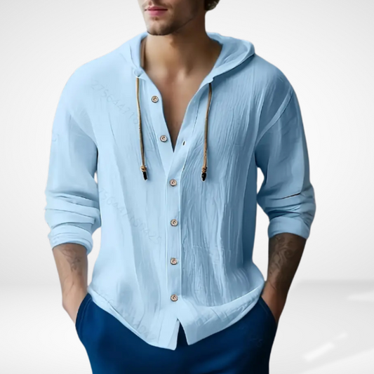 Langærmet bluse med hætte og knapper til mænd – Bertram