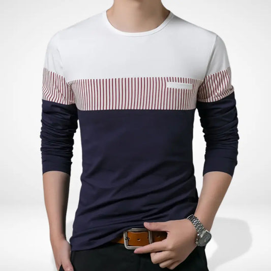 Langærmet T-shirt med stribet brystpanel til mænd – Stanley