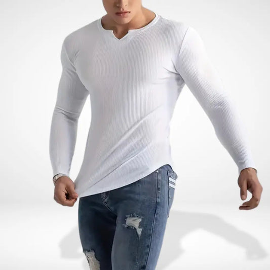Langærmet T-shirt med notch-halsudskæring til mænd – Cain