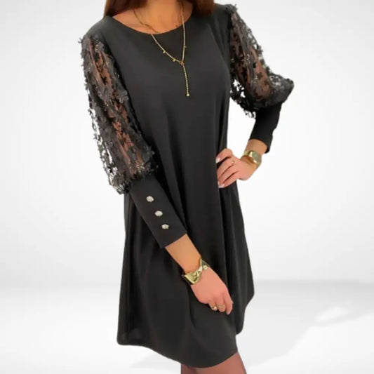 Mini-kjole med blondeærmer og festligt udtryk til kvinder – Alfreda