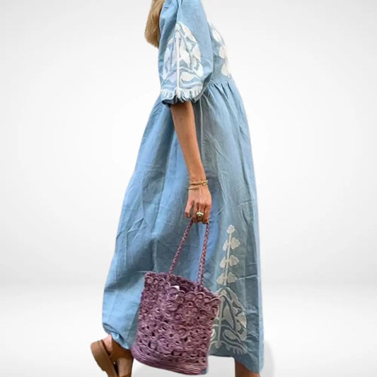 Maxikjole med pufærmer og broderet mønster til kvinder – Lacy