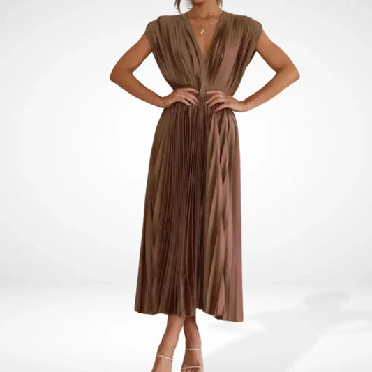 Plisseret maxi festkjole med dyb V-udskæring til kvinder – Perry
