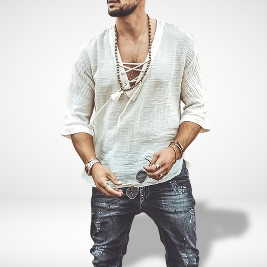 Løs Henley bluse med snørelukning til mænd – Benitez