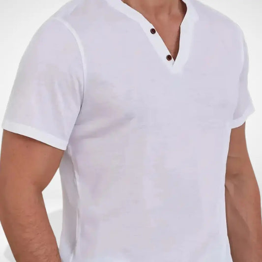 T-shirt med markeret V-hals og knapdetaljer til mænd – Morrow
